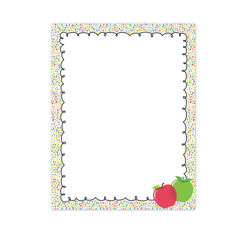 Frame your bulletin boards in style with this colorful Apples EZ Border. Use the border by itself or layer it with another border for a unique look. Perfect for use on bulletin boards in a wide variety of classroom, office, and school settings. This border is the perfect complement to other decor items in our Apple Time Collection. Each package comes with enough borders to complete 2 full bulletin boards.