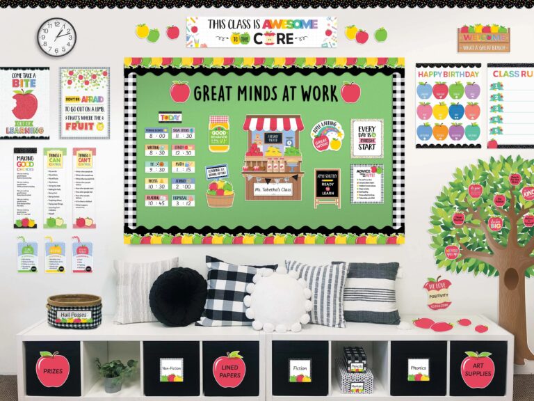 This fun and versatile 2-sided banner features colorful apples along with different messages on each side—Side 1: “Welcome” and Side 2: “This class is awesome to the core.” It can be used during back-to-school to welcome students and parents then flipped over for an affirming message the rest of the school year.
