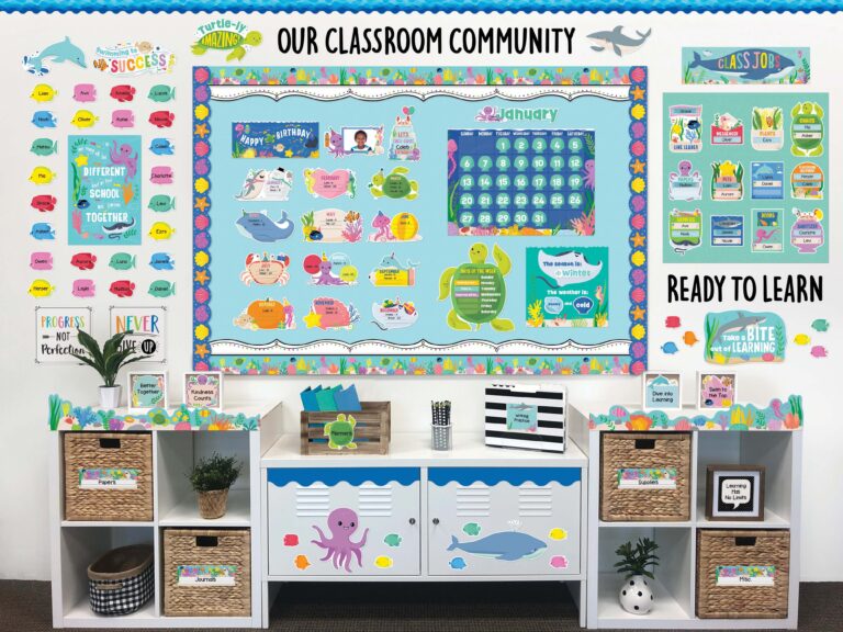 This colorful Sea Friends Calendar Set features friendly underwater animals along with accents symbolic of each month. Use the moveable pieces to teach calendar concepts, display the month of the year, the days of the week, and record the changing seasons and daily weather conditions.