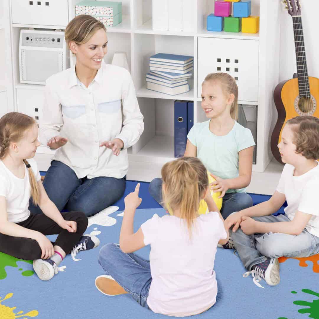 سجادة عداء عملاقة بطبعة House of Kids 936 – سجادة للفصل الدراسي مقاس 200 × 200 سم للأطفال