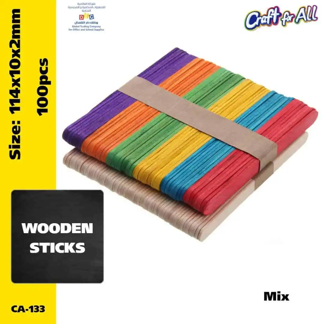 أعواد خشبية مختلطة – 50 قطعة طبيعية + 50 قطعة ملونة