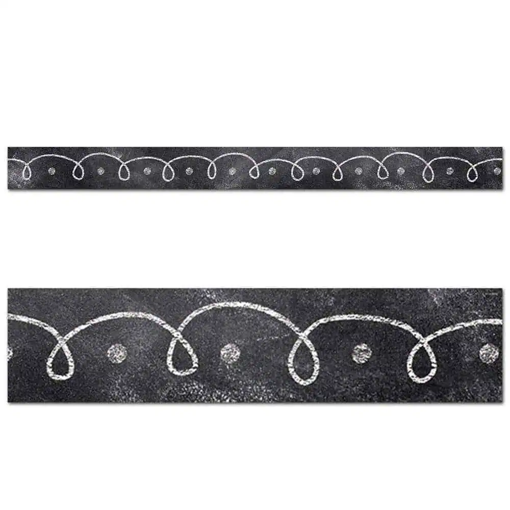 Add excitement to bulletin boards or windows with this unique border! The simple black and white chalk design makes this border versatile for use in any school from preschool to high school.