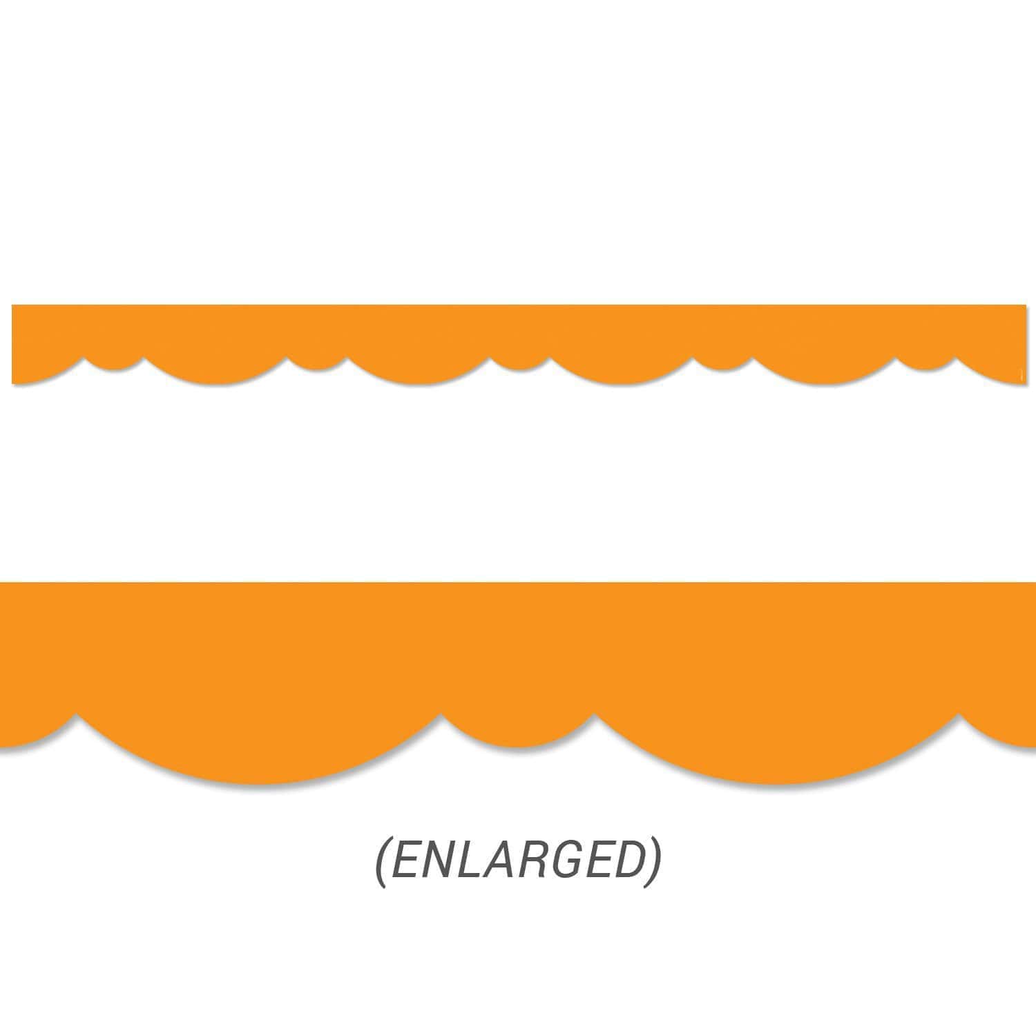 A fun, fresh twist on a solid border!  This Orange Stylish Scallops Border features a playful double scallop design to create a neat and easy way to edge any bulletin board or classroom display.  Also great for use on bulletin boards in an office, a , a college dorm, or a senior living residence.  With its versatile scallop design, this bulletin board border can be used alone to create a basic look or layered with another border for a more designer look.