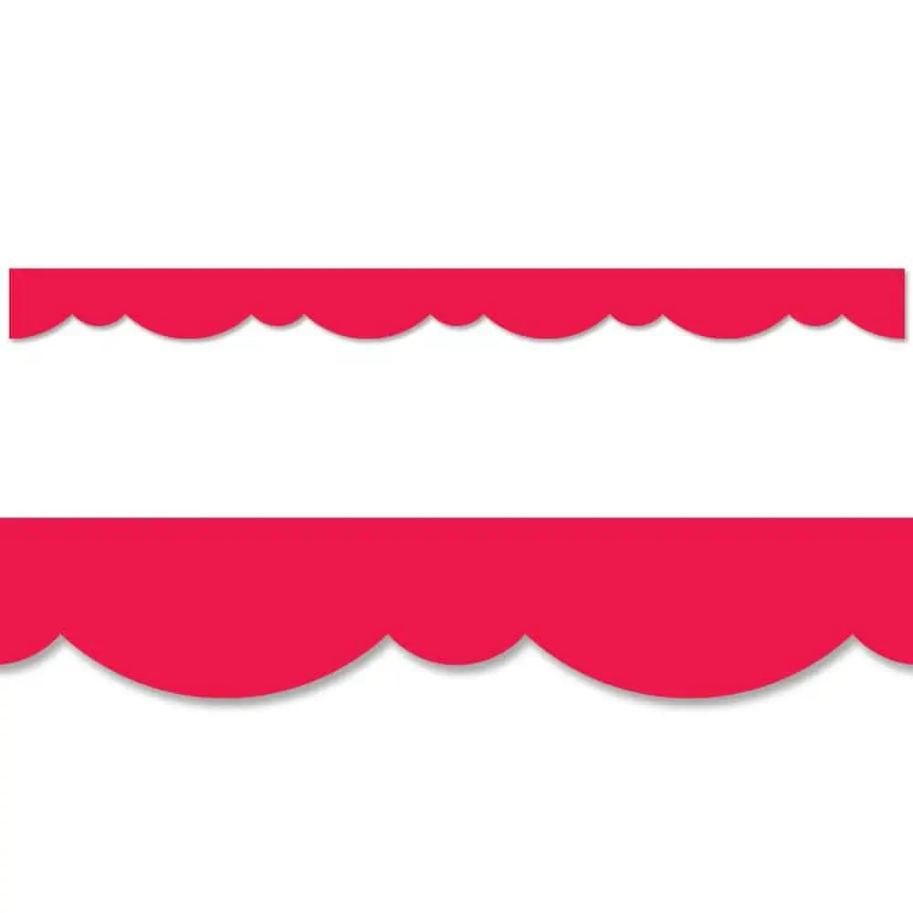 A fun, fresh twist on a solid red border! This Poppy Red Stylish Scallops Border features a playful double scallop design to create a neat and easy way to trim any bulletin board or classroom display. Great for any type of school setting at any grade level! Also great for use in an office, a , a college dorm, or a senior living residence. With its versatile scallop design, this bulletin board border can be used alone to create a basic look or layered with another border for a more designer look. The vibrant red color is perfect for use on seasonal and holiday displays for Christmas, 4th of July, Valentine’s Day, and more.