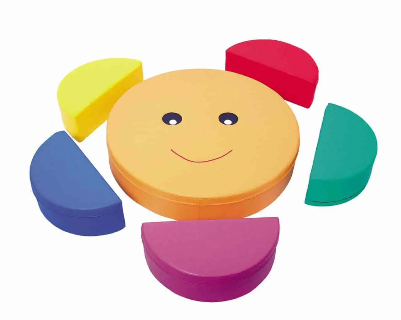 جلسة اسفنجية – زهرة A six pc set of moulds for both fun and rest. It can be arranged in any possible way, it could serve as a table with semicircular seats. • 1 circle with dia. 100 cm, height: 20 cm • 5 semicircles, dim. 60 x 30 x 20 cm