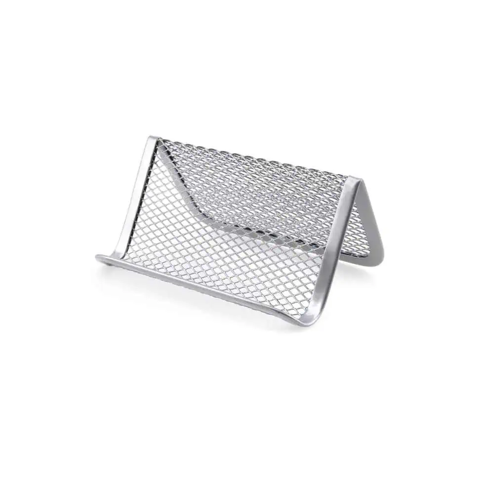 يضيف اللون الفضي لمسة من الأناقة، مما يكمل أي ديكور مكتب. بفضل تصميمها المفتوح، يمكنك الوصول بسهولة إلى بطاقات العمل الخاصة بك وعرضها، مما يضمن ترك انطباع دائم لدى العملاء والزملاء. يمكن لحامل بطاقات العمل الشبكي المعدني استيعاب ما يصل إلى 50 بطاقة عمل ذات حجم قياسي، مما يبقيها منظمة بشكل أنيق وفي متناول اليد.