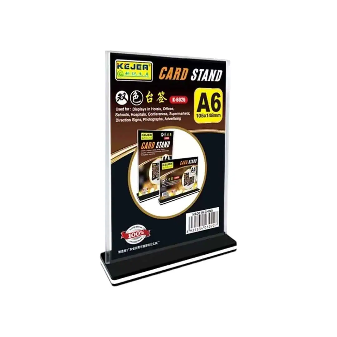 حامل البطاقات المنزلق على شكل حرف T باللون الأسود – عمودي A6-148*105 هو حل عرض أنيق وعملي مصمم لعرض المعلومات أو المواد الترويجية أو الإشعارات في بيئة احترافية. يوفر تصميمها على شكل حرف T الثبات ويضمن بقاء البطاقة المعروضة في وضع مستقيم ومرئية، مما يجعلها مثالية للاستخدام في المكاتب أو بيئات البيع بالتجزئة أو الأحداث. يستوعب الاتجاه الرأسي بطاقات بحجم A6، بقياس 148 × 105 ملم، مما يوفر مساحة واسعة للعروض التقديمية الإبداعية أو المعلومات الأساسية. يضفي اللون الأسود الأنيق لمسة من الرقي، ويمتزج بسلاسة مع الديكورات الداخلية المختلفة بينما يلفت الانتباه إلى المحتوى المعروض. يعد هذا الحامل متعدد الاستخدامات سهل التجميع ويسمح بالتحديثات السريعة، مما يجعله خيارًا مناسبًا للبيئات الديناميكية التي تتطلب تغييرات متكررة في المواد المعروضة.