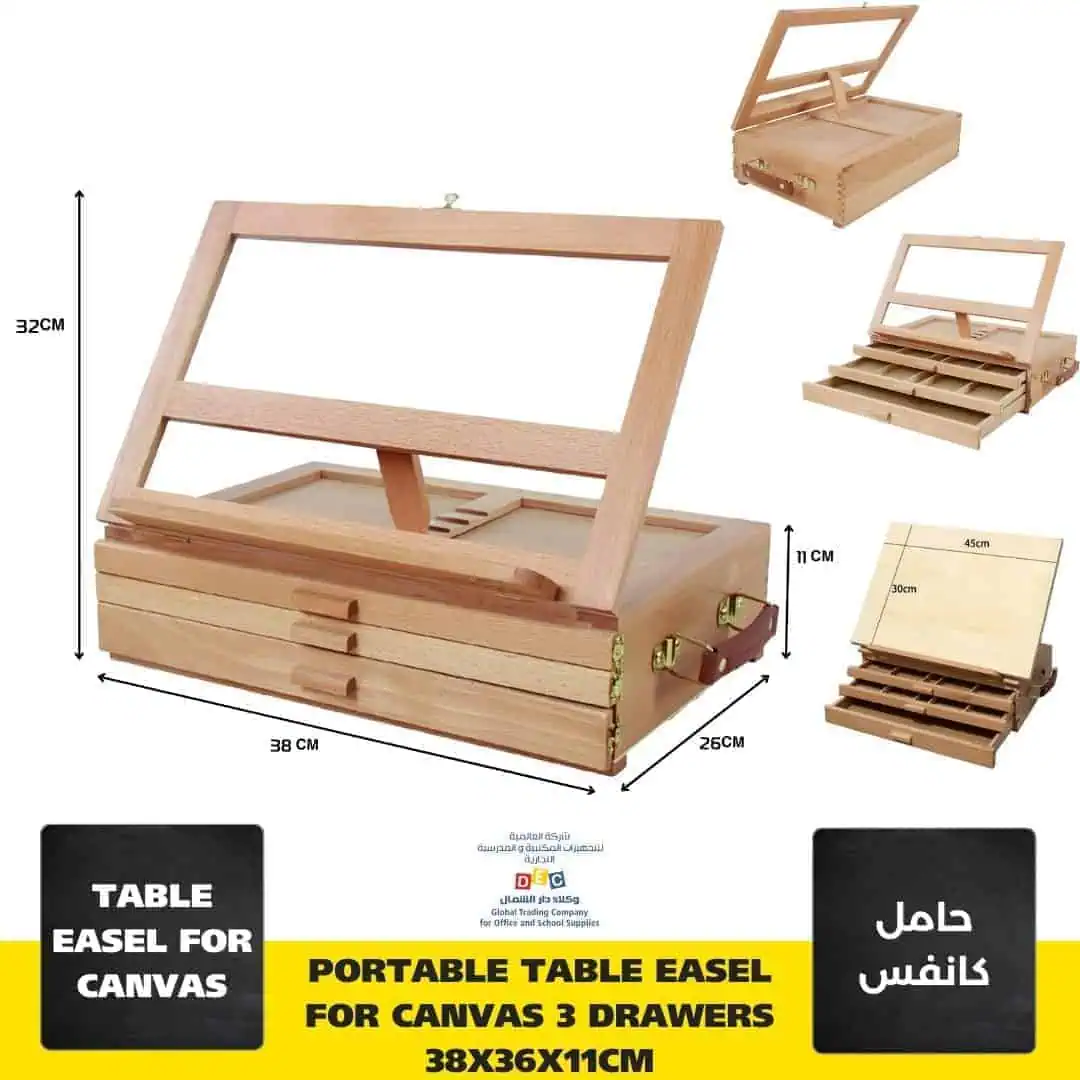 حامل لوحة رسم كانفس متنقل مع 3 أدراج 38x36x11 سم