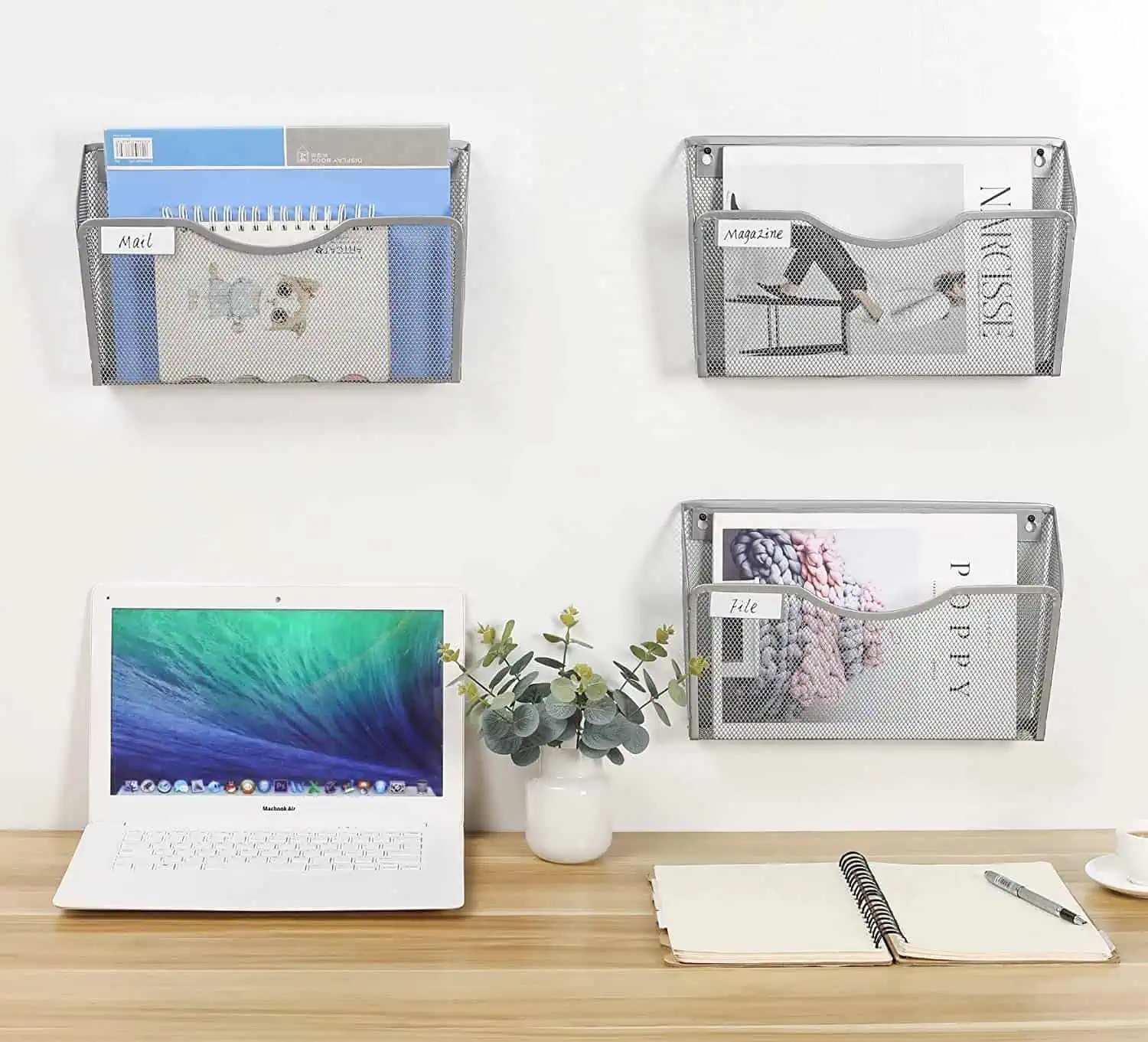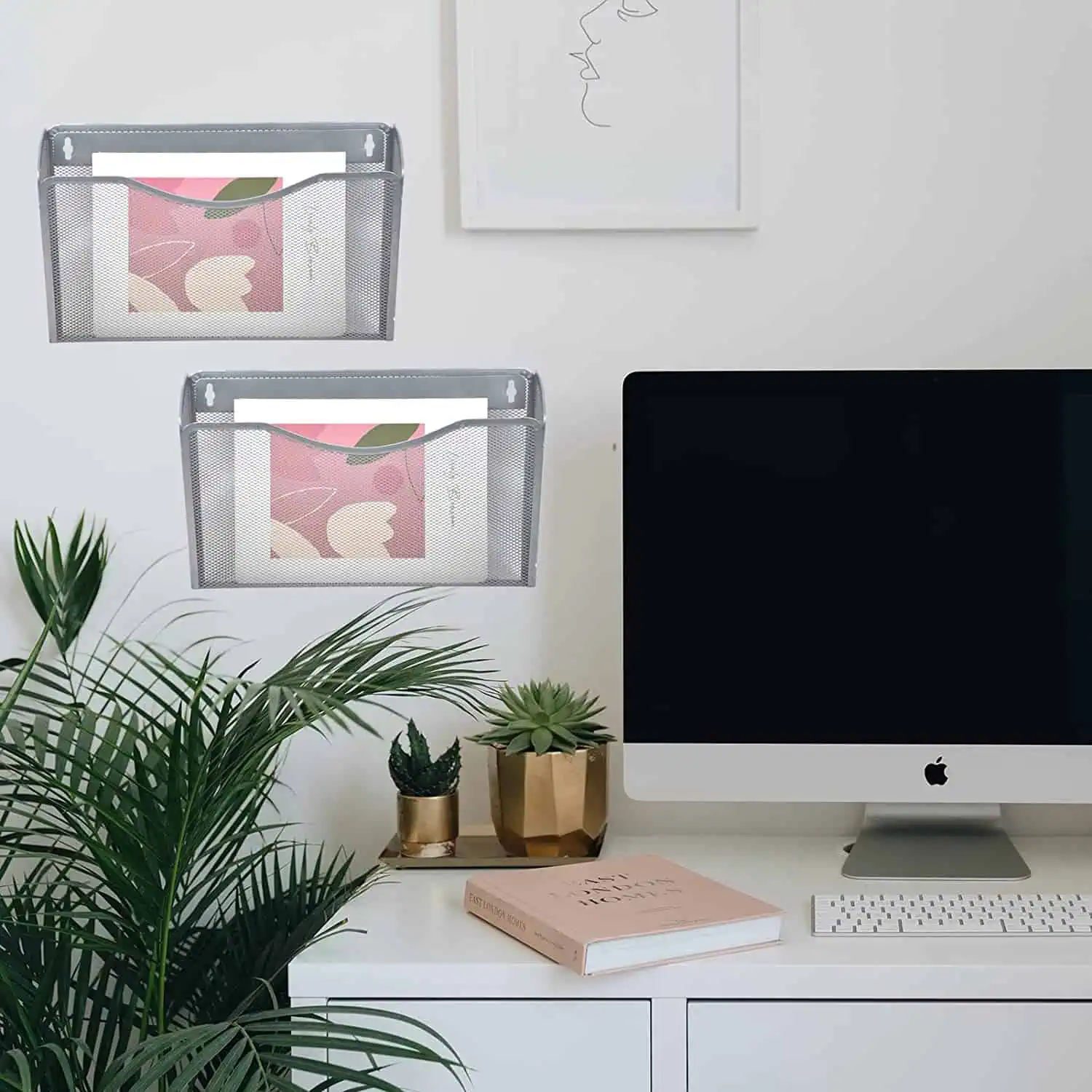 حامل ملفات حائط بحجم الرسائل مفرد معدني شبكي باللون الفضي