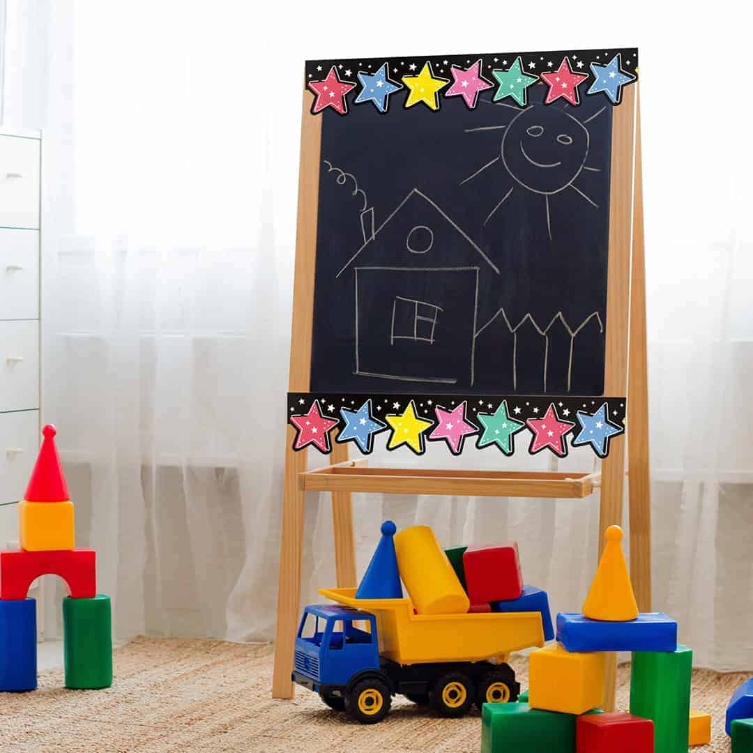 اطارات سبورة Star Bright EZ هذه الطريقة المثالية لتأطير عروض الأعمال المتميزة للطلاب! من المؤكد أن النجوم الملونة الجريئة والمشرقة ستضفي الحيوية على أي غرفة.