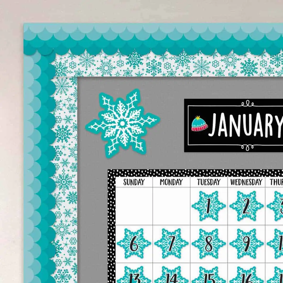 قم بتزيين لوحات الإعلانات والغرف والممرات والمناطق المشتركة باستخدام حدود Snowflakes EZ هذه. هذه الحدود متعددة الاستخدامات مثالية لتزيين العطلات والمواسم. تأتي حدود EZ الجديدة هذه في شرائح أصغر حجمًا، وهي أسهل في الإدارة والتخزين. تأتي كل عبوة مع حدود كافية لاستكمال لوحتين كاملتين للإعلانات.