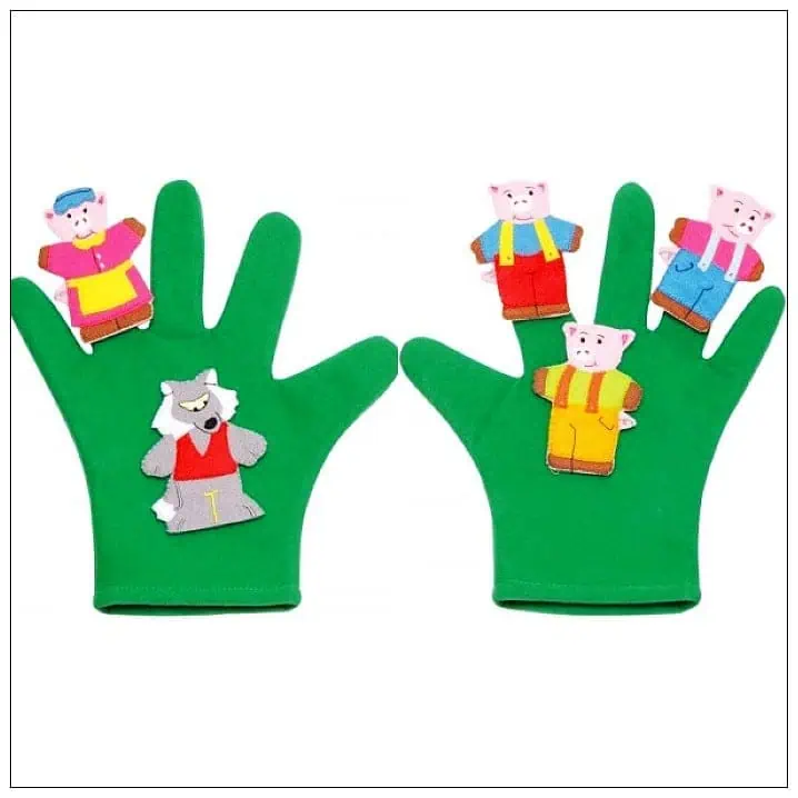 زوج من قفازات القصص الخضراء البسيطة التي يمكن استخدامها لإضفاء الحيوية على رواية القصص.