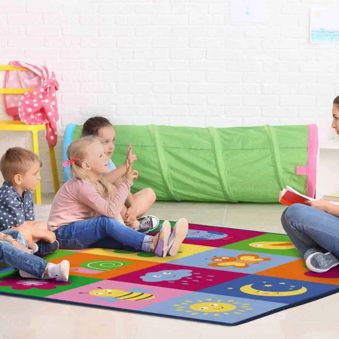 سجادة عداء عملاقة بطبعة House of Kids 1077 – سجادة للفصل الدراسي مقاس 200 × 200 سم للأطفال