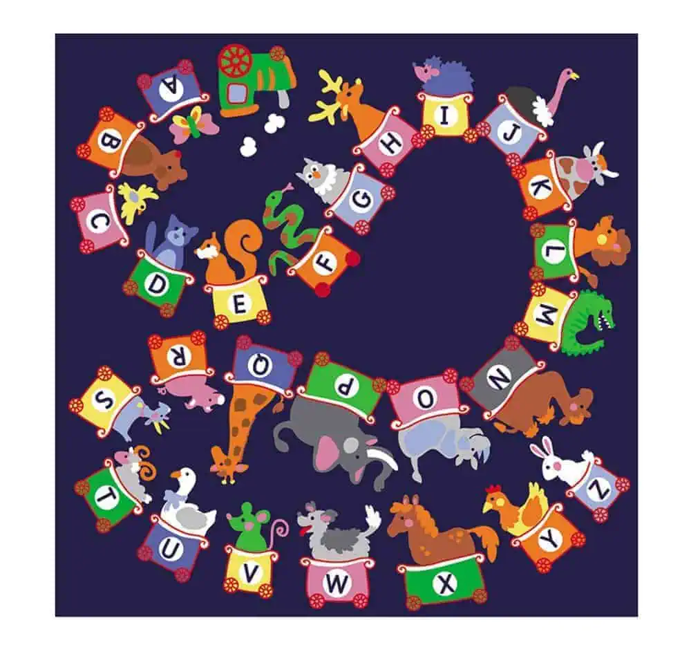سجادة ABC Train HOK-13009 العملاقة من House Of Kids – سجادة غرفة اللعب والفصل الدراسي مقاس 200×200 سم – سهلة التنظيف، سجادة قابلة للطي لغرف نوم الأطفال ورياض الأطفال
