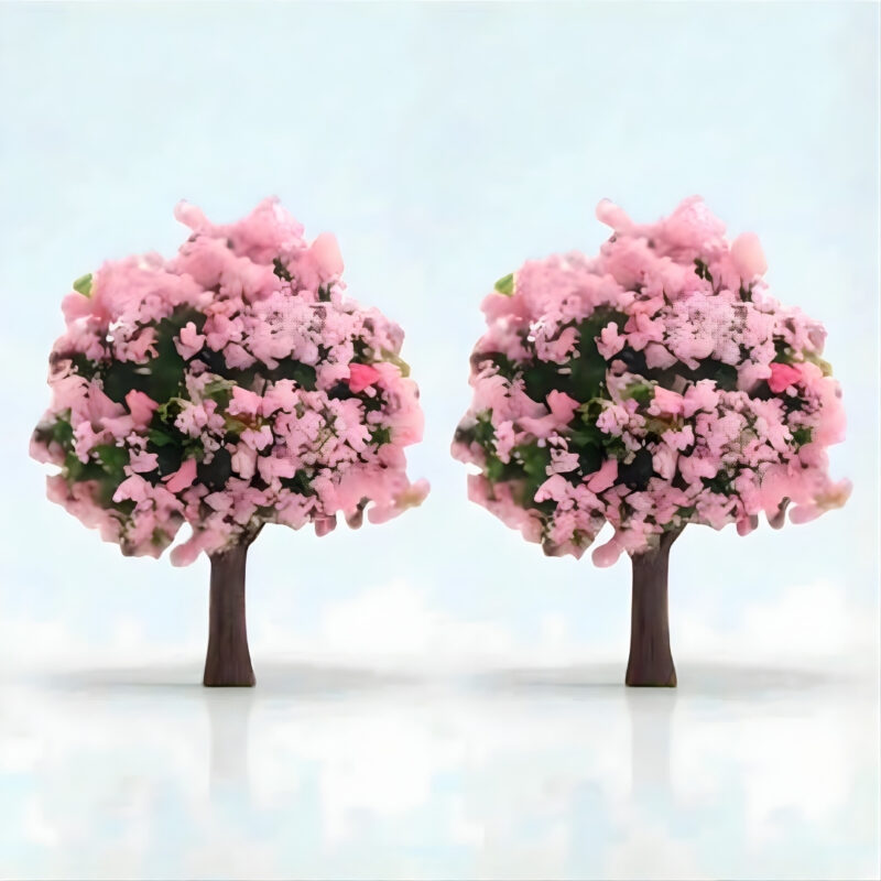 أشجار بلاستيكية مزهرة مصغرة (قطعتان، ارتفاع 3 سم). مثالية لسكك الحديد النموذجية، وبيوت الدمى، والمجسمات، والمشاريع الحرفية. أضف تفاصيل واقعية على الفور!