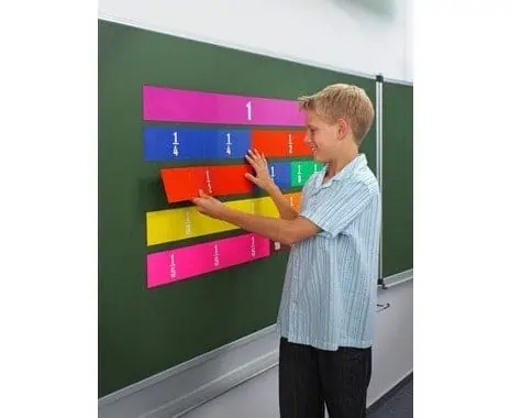 يعد هذا المعدل الكسري الخطي المغناطيسي المكون من 51 قطعة مثاليًا لتوضيح الفواصل على اللوحة. أظهر لطلابك قيمة عناصر الكسر الفردية وأظهر بوضوح نسبة القطع الفردية إلى بعضها البعض. تتم طباعة قيمة الأجزاء الفردية على الخطوط باللون الأبيض، بحيث يكون التعامل معها أسهل. ويمكن أيضًا تقديم مهام أو حلول جزئية مثالية على السبورة. > شرائط تقسيم الحجم: 1/1 = 100 × 9.5 سم (العرض × الارتفاع)