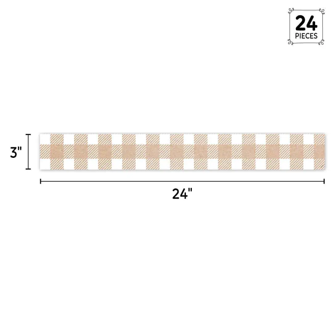 تتميز هذه الحافة الذكية والبسيطة من Kraft Buffalo Check EZ اطارات سبورة بنمط مربعات بيضاء على خلفية بنمط Kraft. استخدميه بمفرده لإنشاء مظهر كلاسيكي أو ضعيه فوق حدود أخرى للحصول على مظهر فريد. مثالية للاستخدام على لوحات الإعلانات في مجموعة واسعة من الفصول الدراسية والمكاتب والمدارس. تأتي حدود EZ هذه في شرائح أصغر حجمًا، مما يسهل إدارتها وتخزينها. تحتوي كل حزمة على حدود كافية لإكمال لوحتين إعلانات كاملتين.