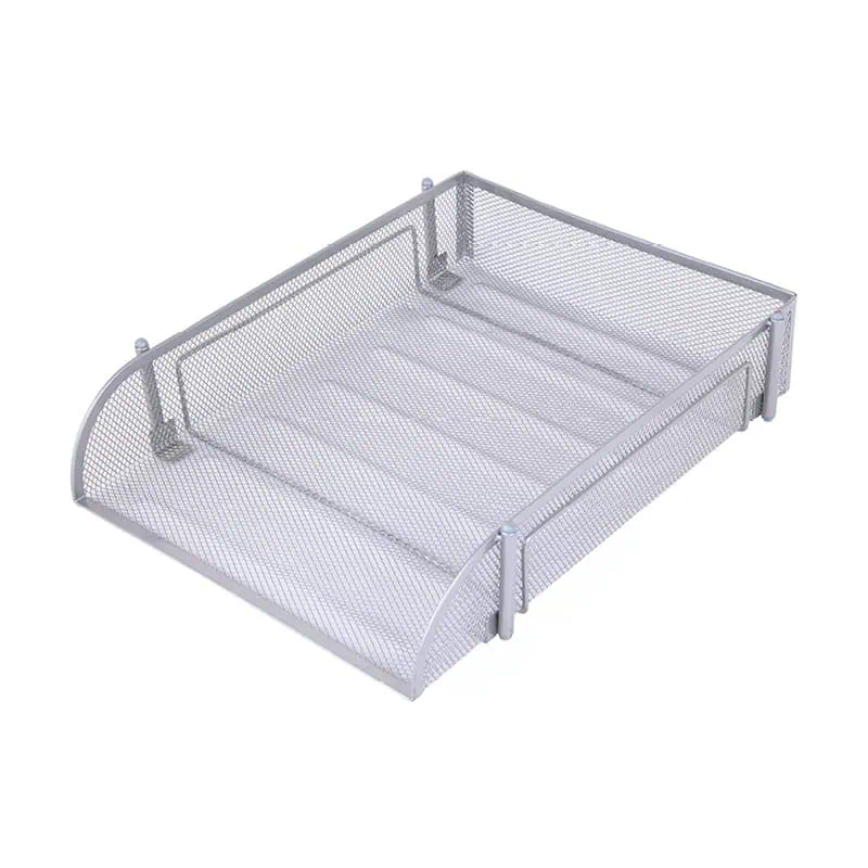 صينية رسائل معدنية شبكية قابلة للتكديس مع أنبوب تحميل أمامي باللون الفضي