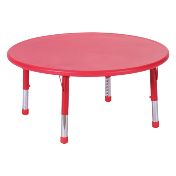 عزِّزي صفّكِ بهذه الطاولة الدائرية البلاستيكية القابلة لتعديل الارتفاع المتينة والملونة، والمصممة خصيصًا لبيئات رياض الأطفال والتعلّم المبكر.