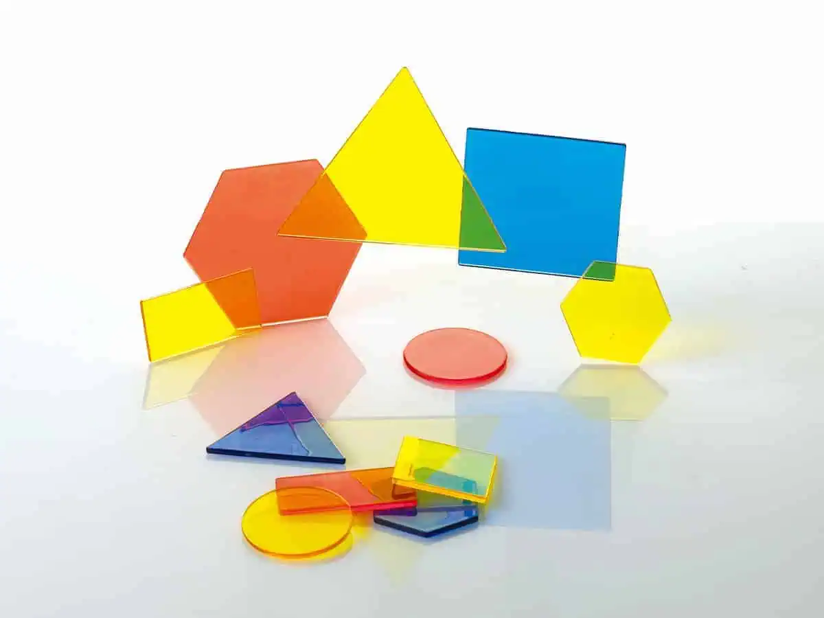 كتل السمات الشفافة تحتوي المجموعة على 5 أشكال بثلاثة ألوان وحجمين. يبلغ مقاس المربع الكبير 5.5 سم. 2 مجموعات.