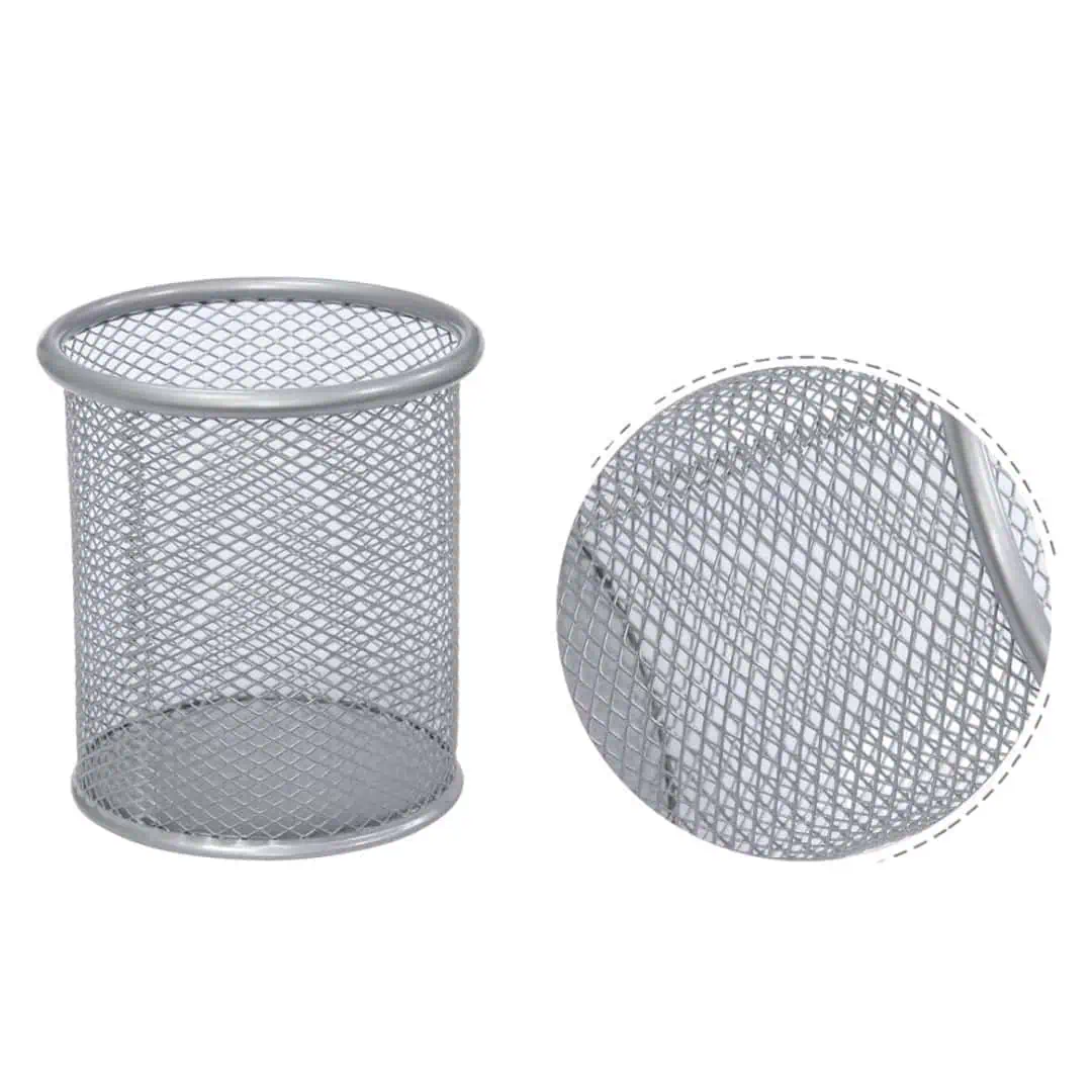 كوب أقلام قابل للتكديس معدني شبكي باللون الفضي