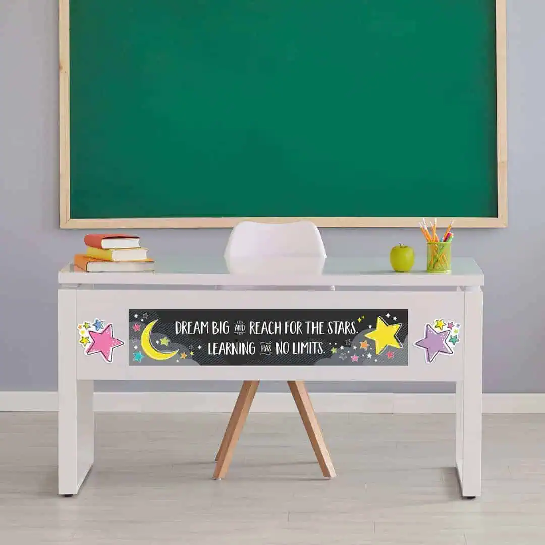 تتميز هذه اللافتة النابضة بالحياة ومتعددة الاستخدامات ذات الوجهين برسالة مختلفة على كل جانب – الوجه الأول: “مرحبًا” والوجه الثاني: “احلم بشكل كبير وحقق أحلامك. التعلم ليس له حدود”. يمكن استخدامه خلال العودة إلى المدرسة للترحيب بالطلاب وأولياء الأمور ثم قلبه للحصول على رسائل ملهمة لبقية العام الدراسي.