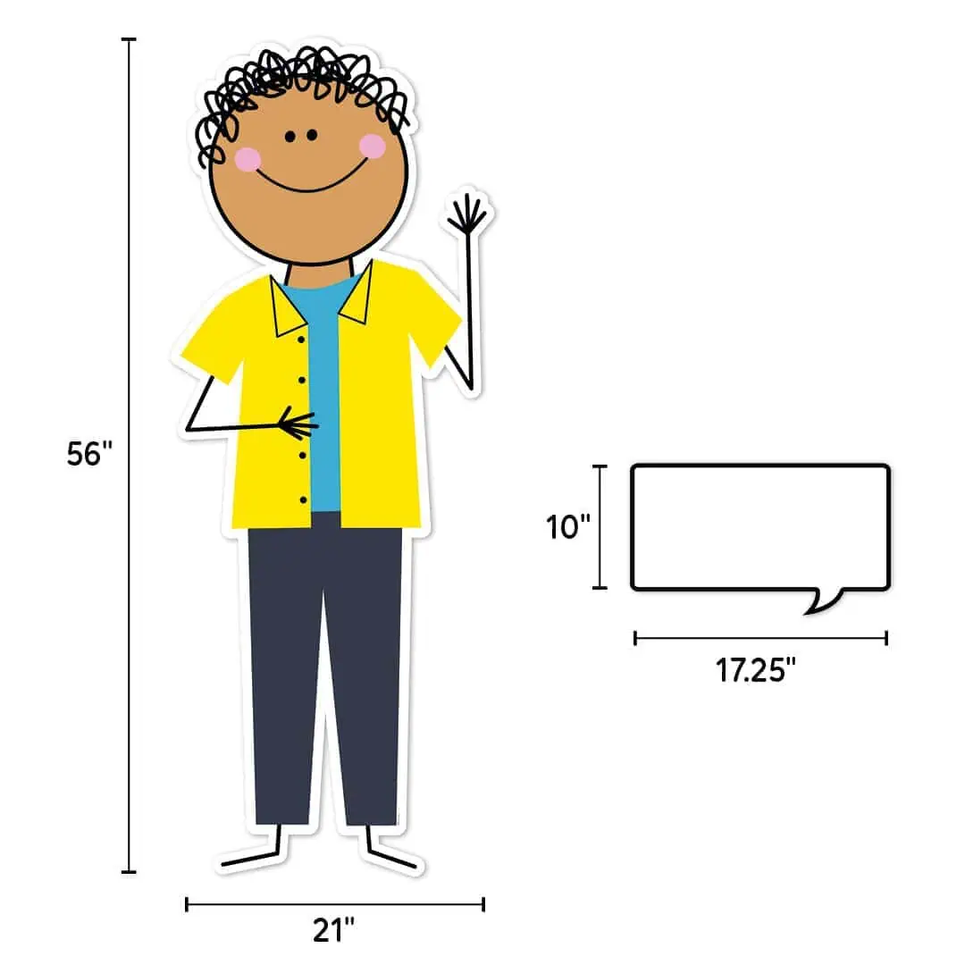 استخدم هذه العصي ذات الحجم الطبيعي للأطفال للتعبير عن رأيك في مداخل المدارس والممرات وغرف الغداء والمكتبات والصالات الرياضية. استخدم فقاعات الكلام لتخصيص الرسائل أو الإعلانات أو التذكيرات الإيجابية والتحفيزية.