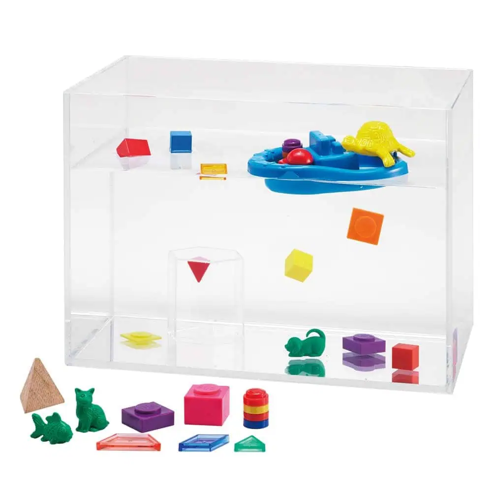 متعة الطفو أو الغرق تشجع الأطفال على التنبؤ بالأشياء التي سوف تطفو والأشياء التي سوف تغرق. سوف يستمتع الأطفال باكتشاف الأشكال التي يمكن أن تطفو أثناء تصنيفها إلى مجموعات من العوامات والثقالات. 78 قطعة متنوعة تتضمن وعاء وقاطرة.