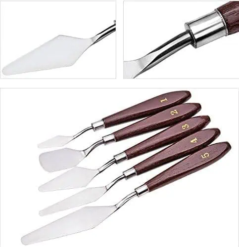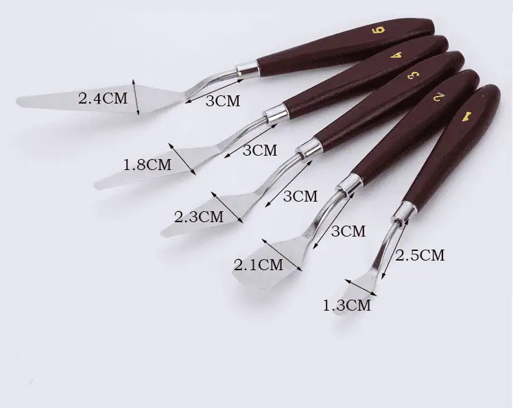 تساعد المقابض المشطوفة على إبقاء يد الفنان بعيدًا عن سطح الطلاء، والشفرات مصنوعة من هيكل فولاذي، وحافة ناعمة، وليست يد تالفة.