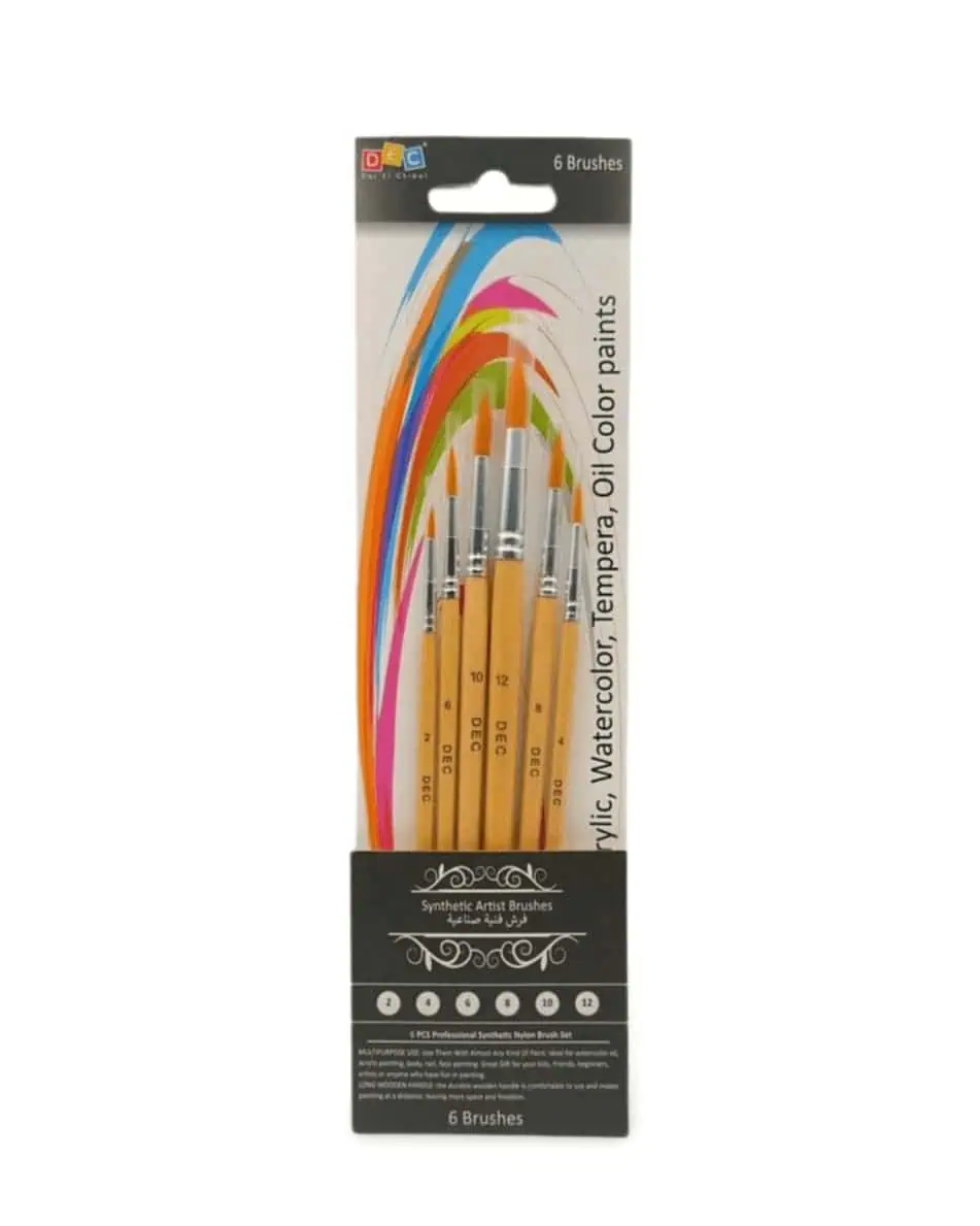 مجموعة فرش طلاء مكونة من 6 قطع، مجموعة فرش طلاء بألوان مائية دائرية ذات شعر صناعي ذهبي مع مقبض قصير من الخشب الطبيعي