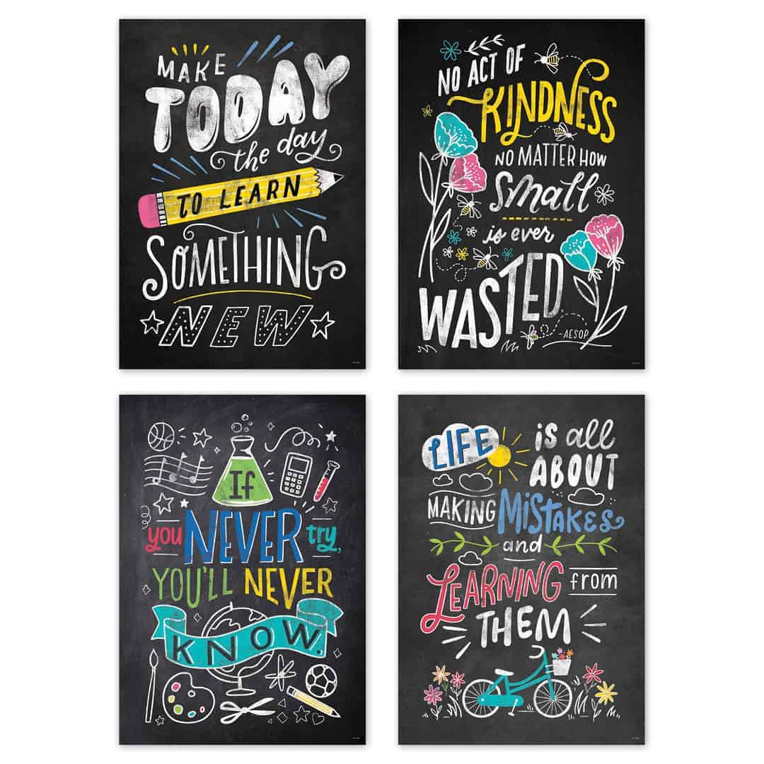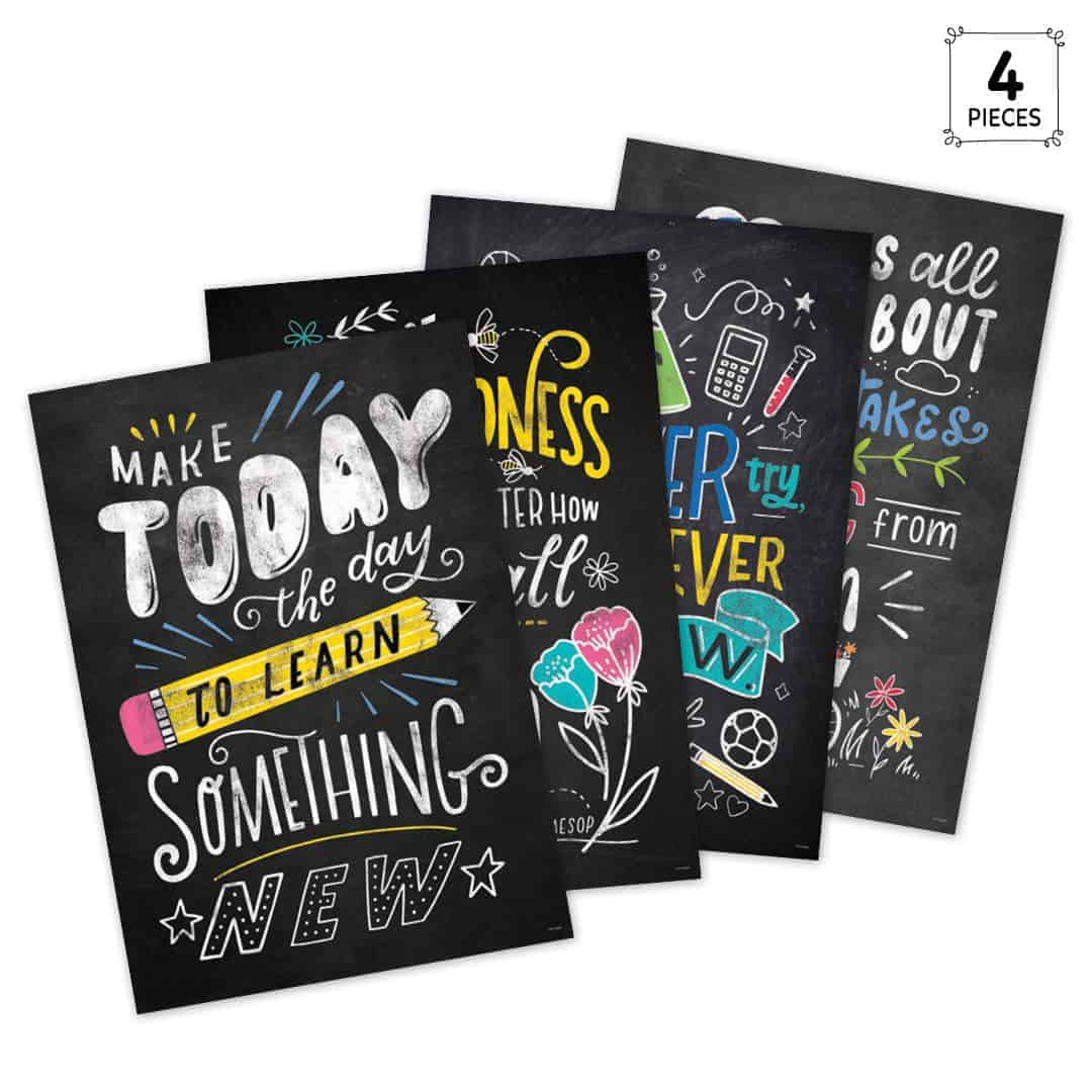 أربع من عباراتنا الملهمة الأكثر شعبية أصبحت الآن معًا في تصميم Chalk It Up! الجديد والممتع. تتميز كل ملصقة في مجموعة الملصقات الأربعة الملهمة الملونة هذه بأحرف زاهية وأنيقة مع صور رسومية ساحرة على خلفية السبورة. ممتاز للعرض في المدرسة أو الكنيسة أو السكن الجامعي أو في أي مكان يحتاج إلى القليل من الإلهام.