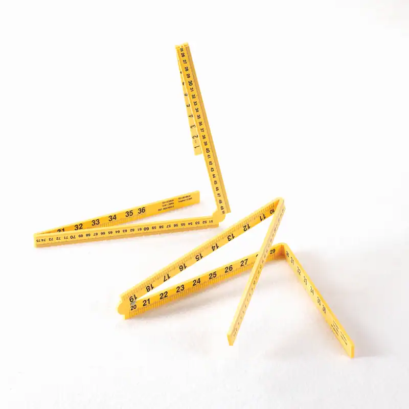 بالسنتيمتر والبوصة. كل مسطرة متر تنطوي بسهولة إلى أربعة أقسام للتخزين السهل.