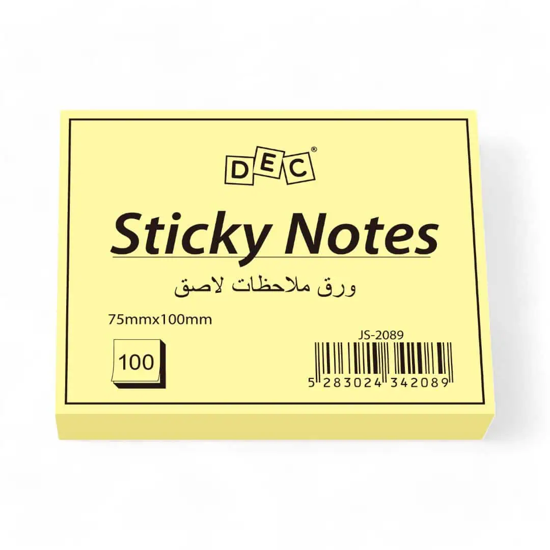 ملاحظات لاصقة 75 مم × 100 مم، 100 ورقة، لون أصفر فاتح