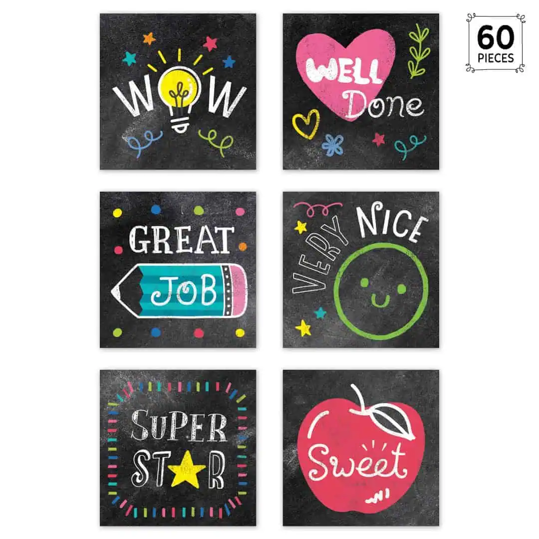 كافئ الطلاب باستخدام ملصقات المكافآت الطباشيرية الملونة هذه. يتم إقران الأقوال الملهمة مثل “أحسنت”، و”عمل رائع”، و”جميل جدًا”، و”لطيف” مع صور مشرقة على خلفية على شكل سبورة لإنشاء ملصقات مكافأة محفزة تجذب الأطفال من جميع الأعمار.
