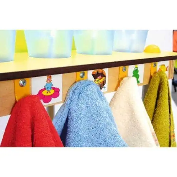 وحدة خشب لتخزين ألاكواب والمناشف متحركة