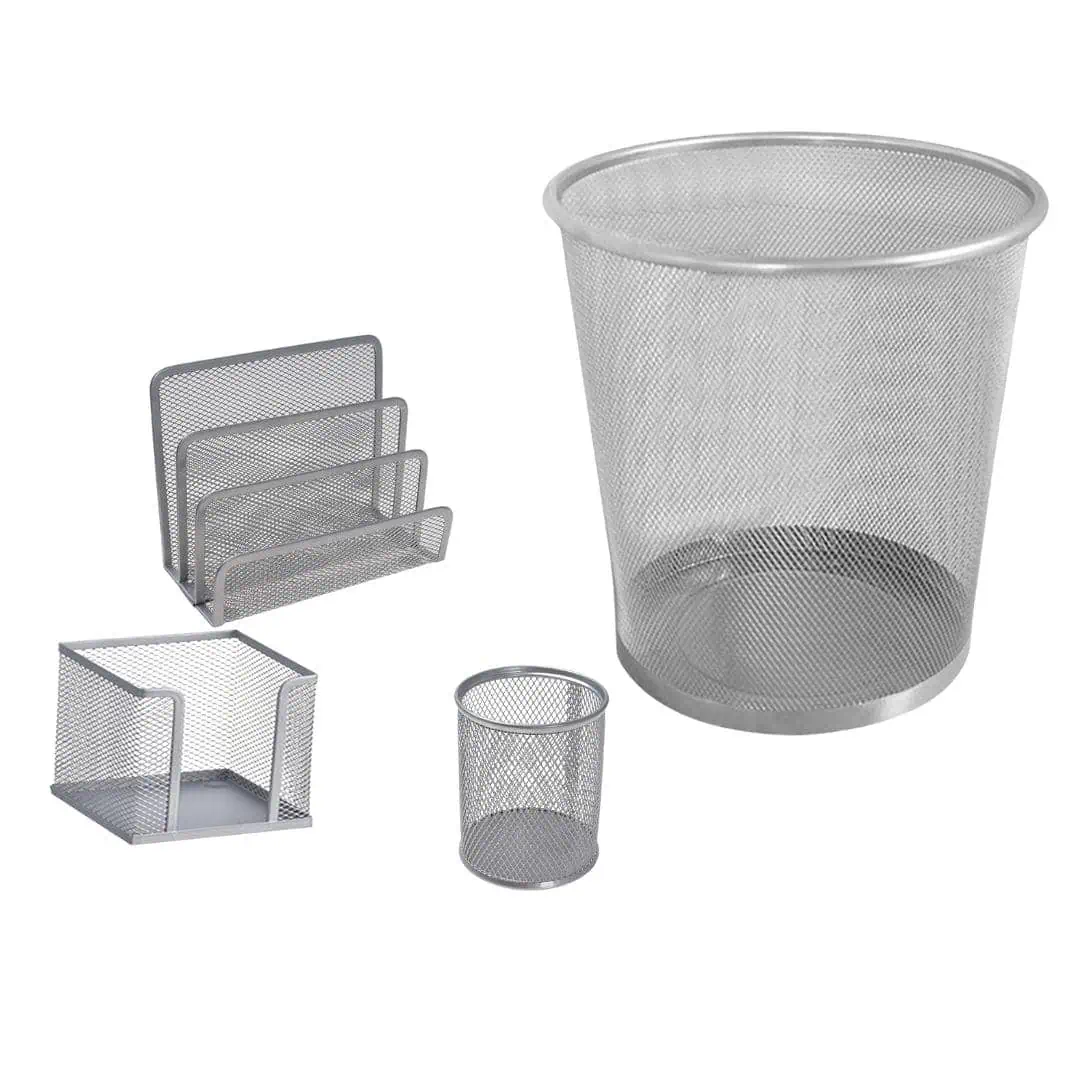 13# طقم من 4 قطع أدوات مكتبية معدنية شبكية باللون الفضي