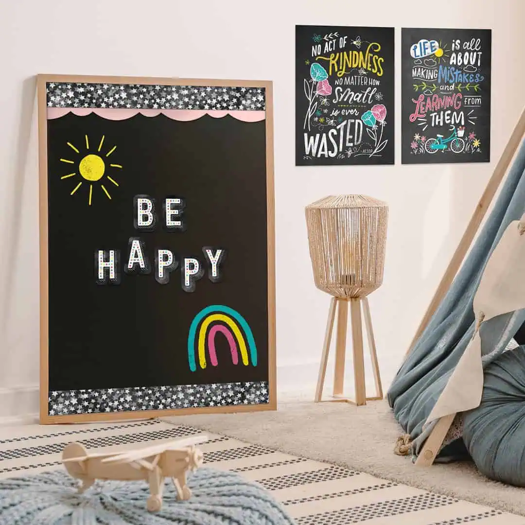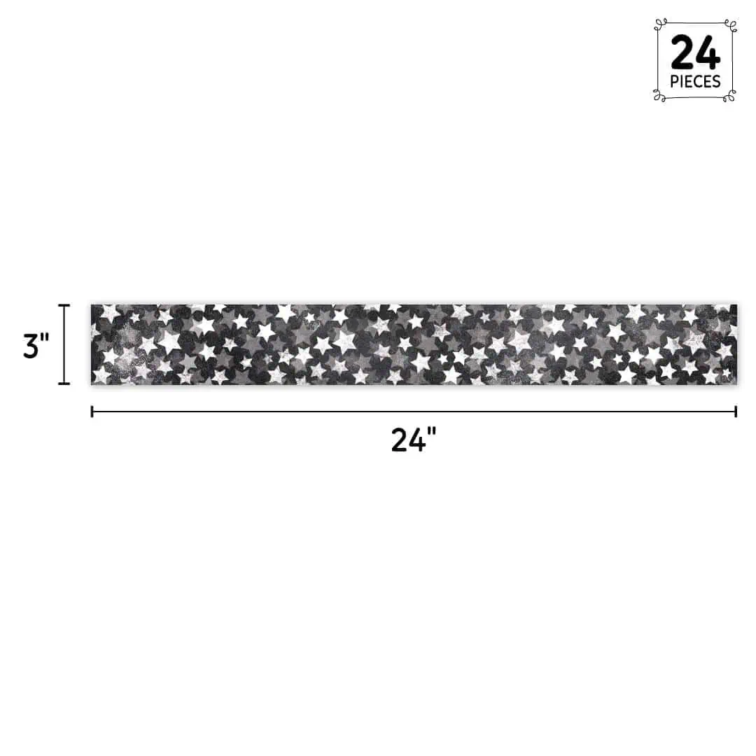 Recognize all-star student achievement by framing displays of student work with the Chalk Stars EZ Border. This border features playful stars on a chalk-style background. Perfect for use on bulletin boards in a wide variety of classroom, office, and school settings. These EZ borders come in smaller strips, which are easier to manage and store. Each package comes with enough borders to complete 2 full bulletin boards.