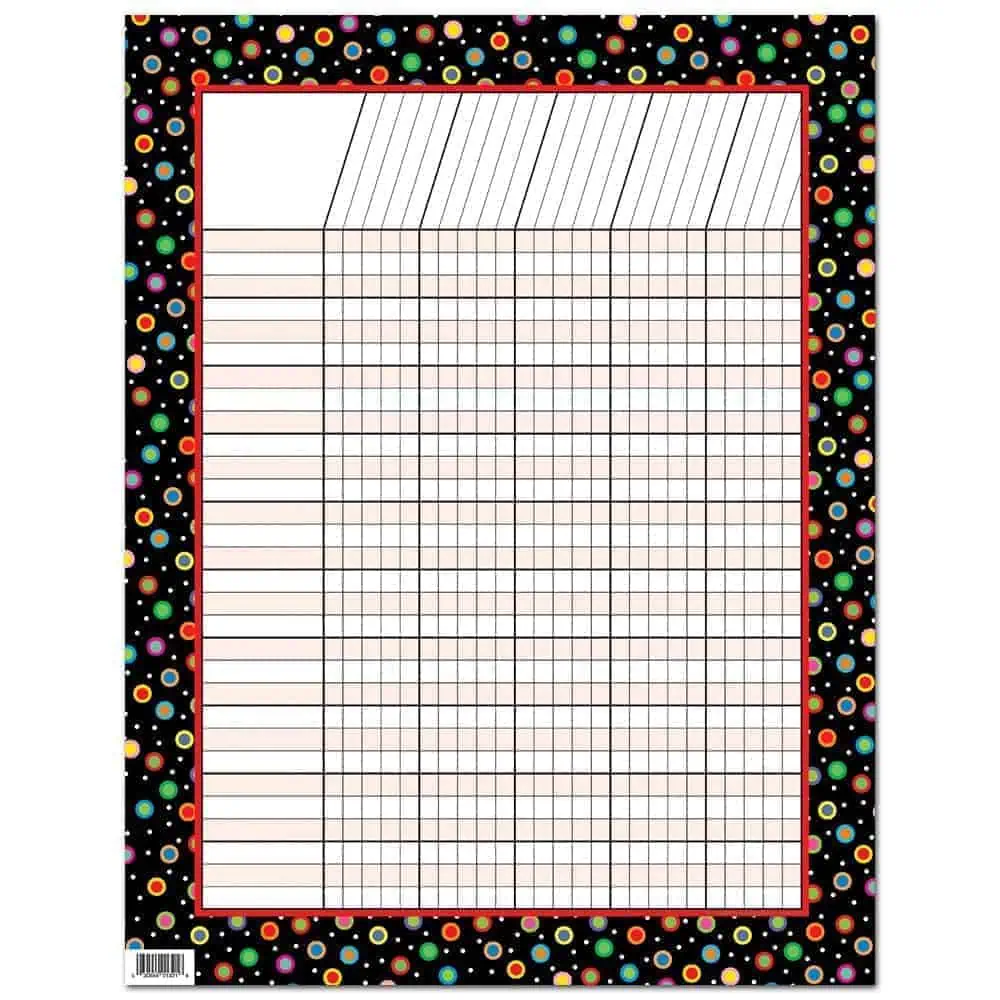This incentive chart is accented with the always popular Dots on Black Designer Décor. Use with CTP 7166 Dots on Black Hot Spots Stickers. 17″ x 22″