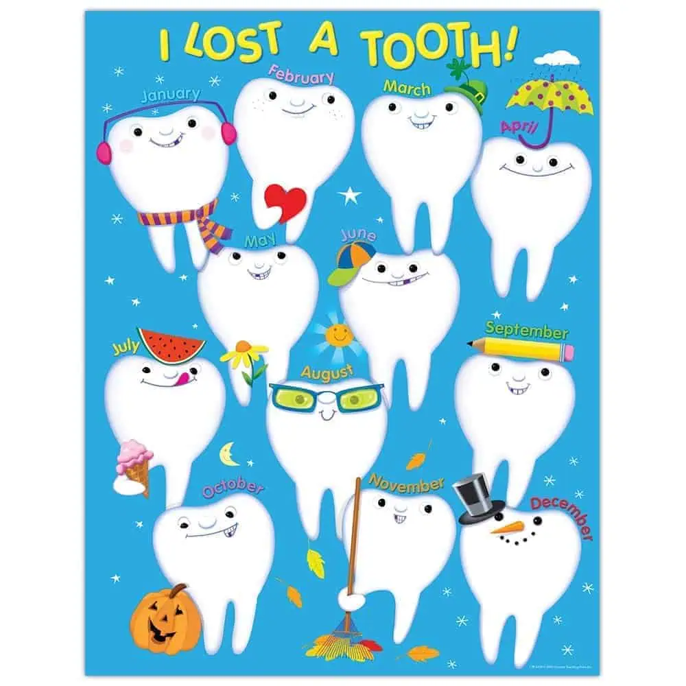 This easy-to-use chart makes losing a tooth special for your students! Includes four pages of activity ideas and reproducibles on the back. 17″ x 22″