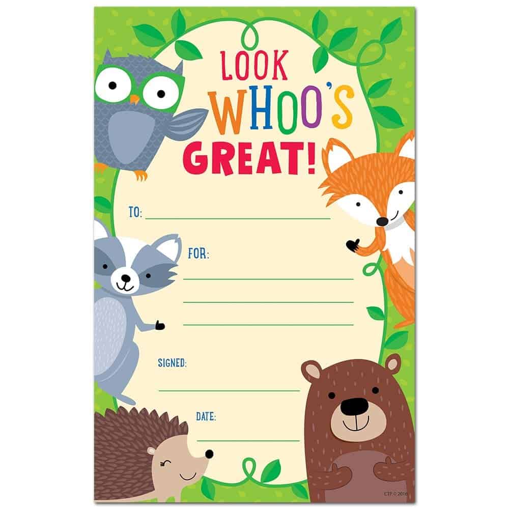 Look Whoo’s Great!! The fun Woodland Friends on this award will help students feel special about their accomplishment or effort!