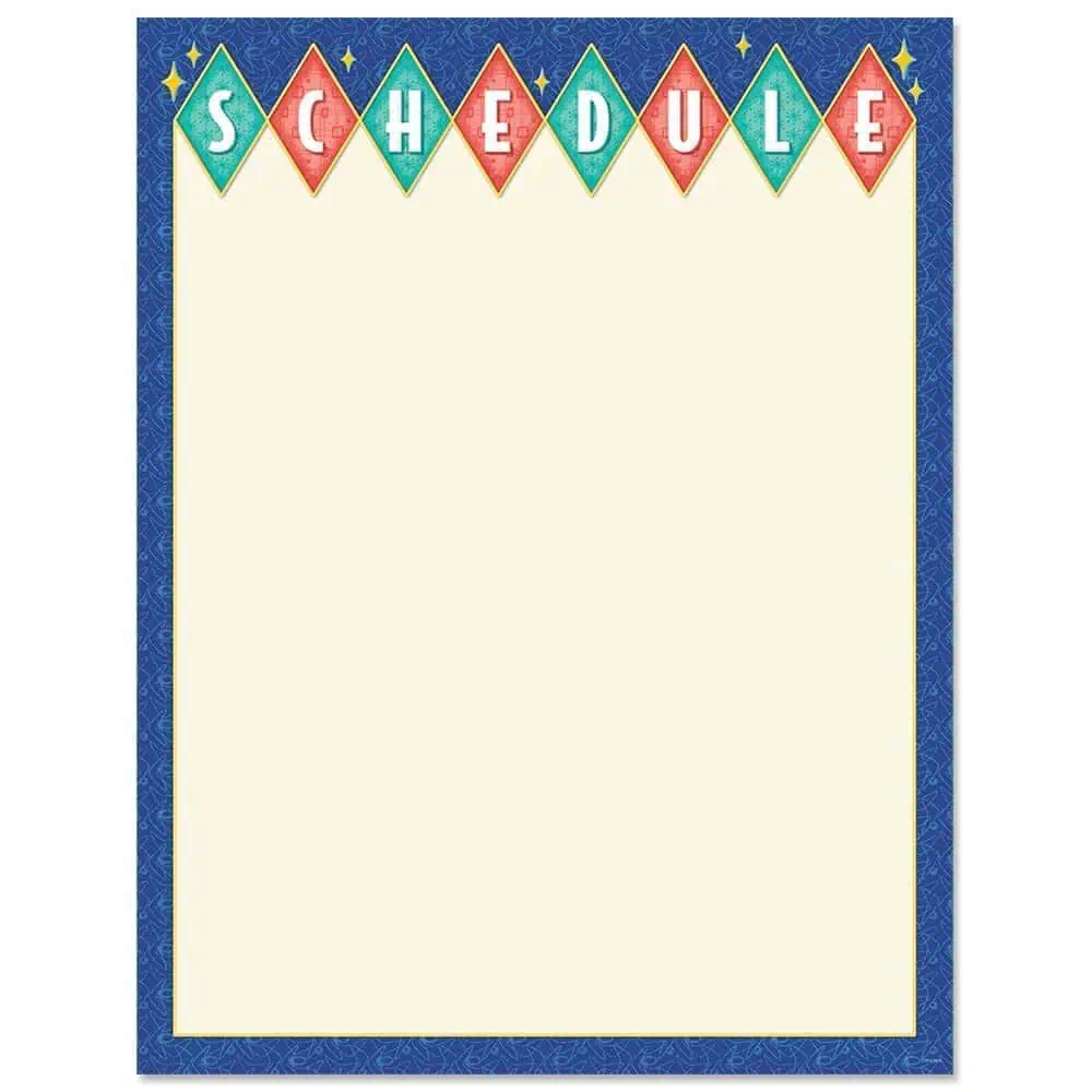 The classic, colorful style of this Mid-Century Mod Schedule Chart is perfect for a variety of classroom and school settings. This chart features a vintage-inspired design and an open writing space that can be easily customized to any class or school schedule.