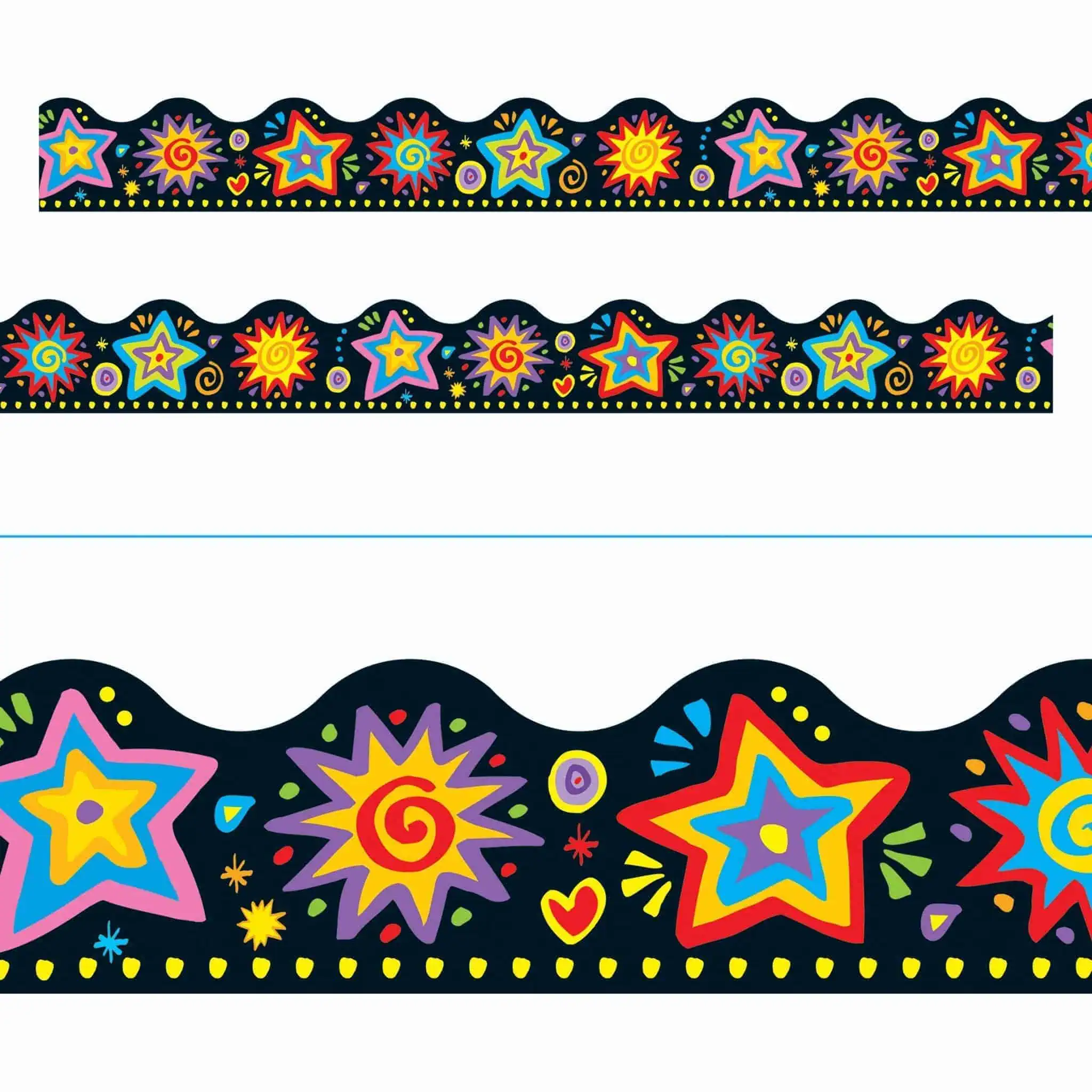 Set the theme for your bulletin board sets, announcements, and calendars with fun patterns and bold artwork. Great for parties, meeting rooms, lobbies, break areas. Handy for art and craft projects, too. Reusable, pre-cut, and scalloped trimmers are 2 1/4″ wide, with 32 1/2′ in a pack.