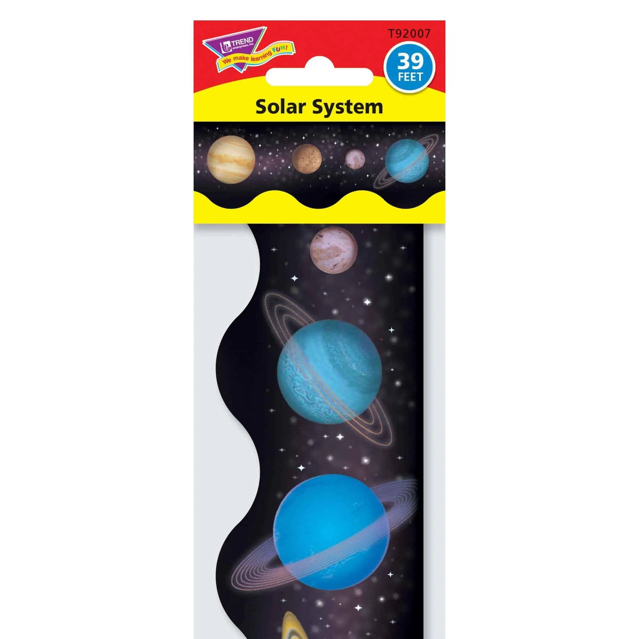 Decorate classrooms and enhance learning environments with durable Terrific Trimmers. Great for parties, meeting rooms, lobbies, break areas. Handy for art and craft projects, too. Colors and designs coordinate with TREND décor. Pack of pre-cut, scalloped trimmer measures 2 1/4″ x 39′.