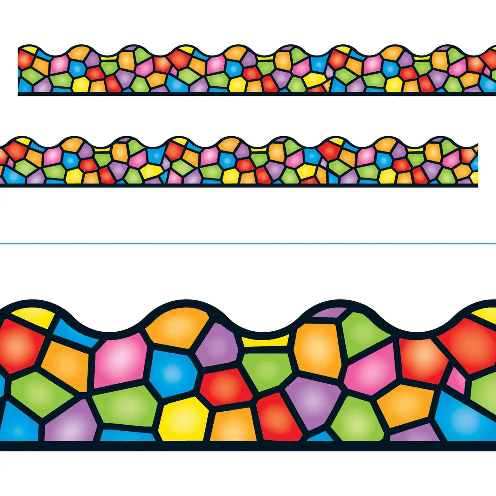 Decorate classrooms and enhance learning environments with durable Terrific Trimmers. Great for parties, meeting rooms, lobbies, break areas. Handy for art and craft projects, too. Colors and designs coordinate with TREND décor. Pack of pre-cut, scalloped trimmer measures 2 1/4″ x 39′.