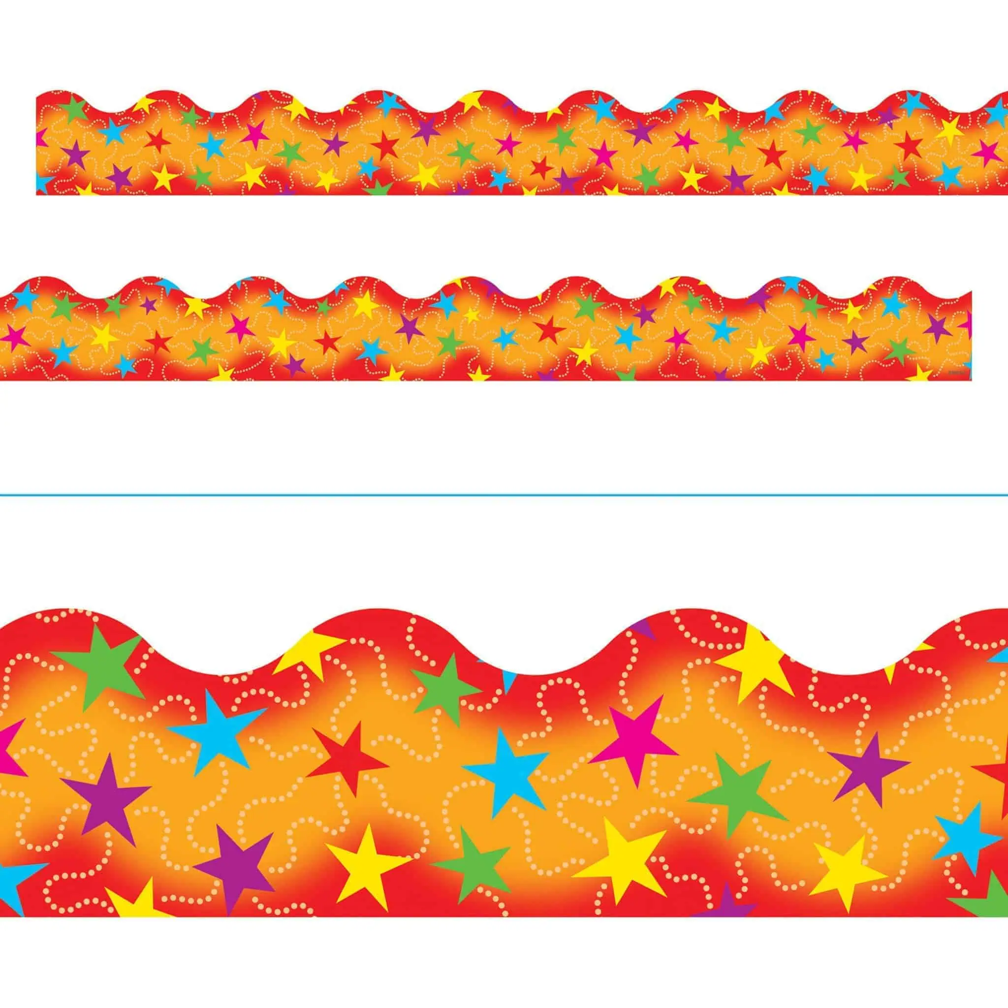 Set the theme for your bulletin board sets, announcements, and calendars with fun patterns and bold artwork. Great for parties, meeting rooms, lobbies, break areas. Handy for art and craft projects, too. Reusable, pre-cut, and scalloped trimmers are 2 1/4″ wide, with 32 1/2′ in a pack.