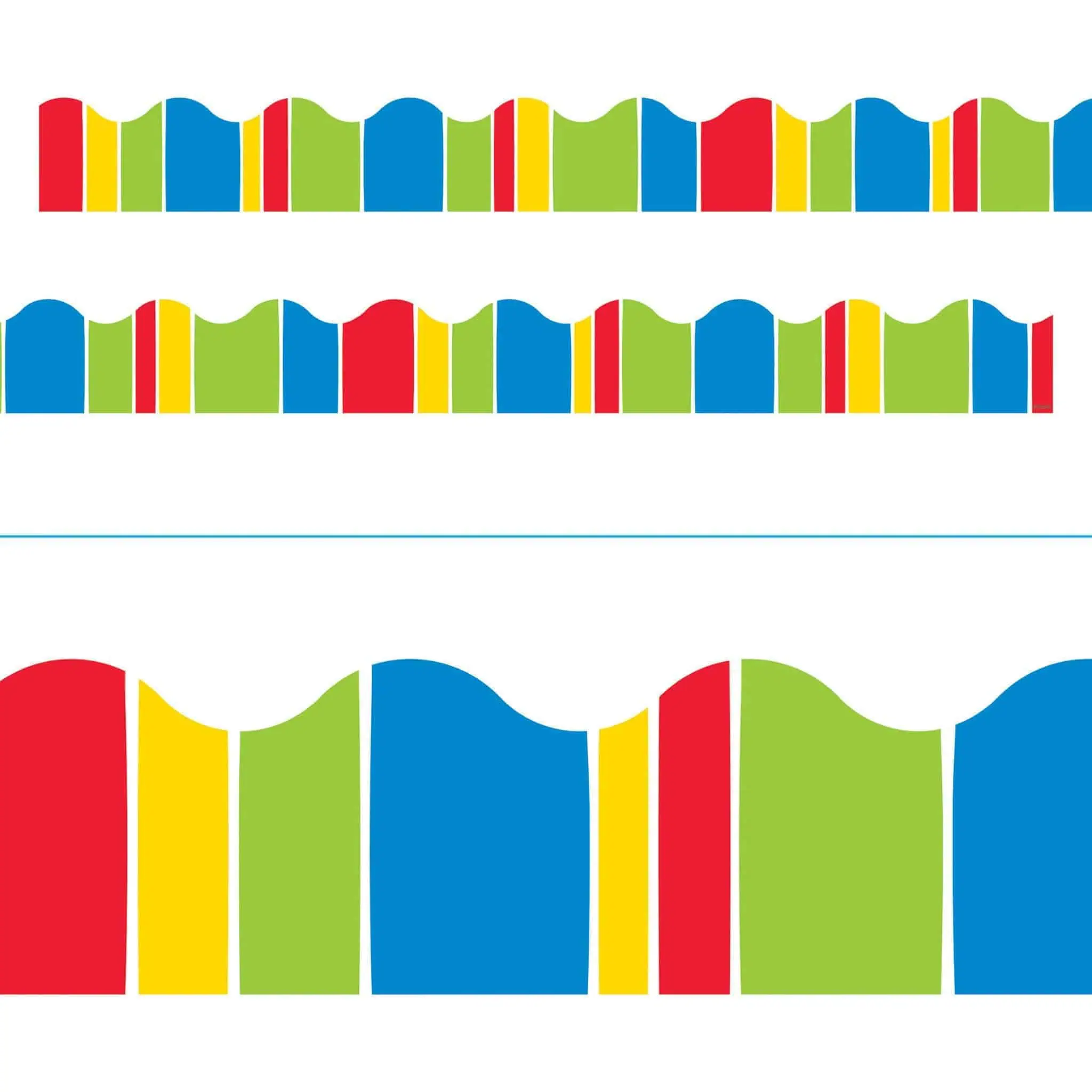 Decorate classrooms and enhance learning environments with durable Terrific Trimmers. Great for parties, meeting rooms, lobbies, break areas. Handy for art and craft projects, too. Colors and designs coordinate with TREND décor. Pack of pre-cut, scalloped trimmer measures 2 1/4″ x 39′.