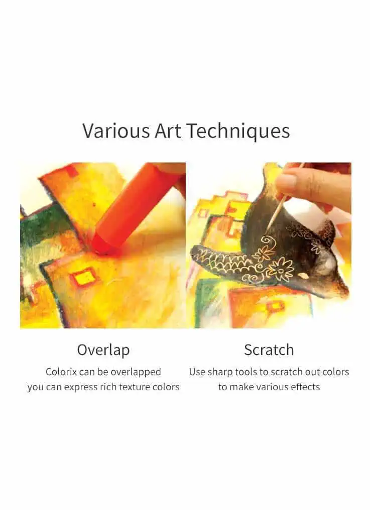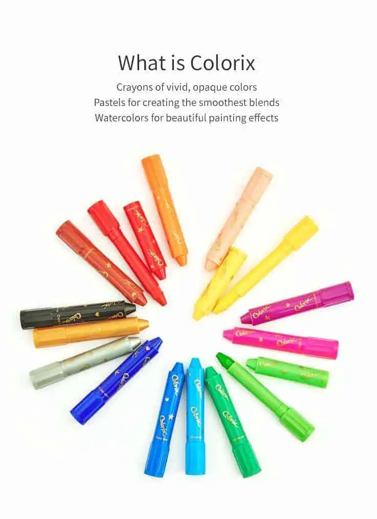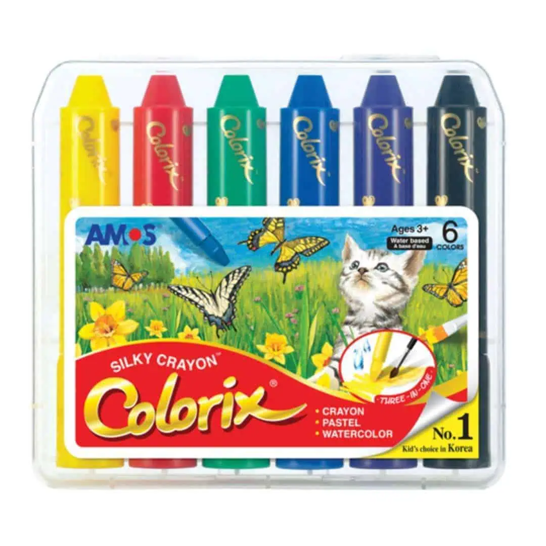 Amos Colorix Silky Crayon 6 colorsContents: 6 colors x 1 setFeature3 in 1 (Crayon, Pastel and Water Color)Premium quality coloring instrumentSuper soft coloring and writingVivid and rich colorsIdeal for school, drawing and coloringEasy gripEasy washable from hands with waterFor use on papers or canvas (Not recommended for skin)For water color effect apply water on the artwork and use brushWarningWash immediately to reduce stains on fabricStore at room temperature keep under 60°CTo prevent crayons from drying up, put the cap back on after useAvoid direct sunlight