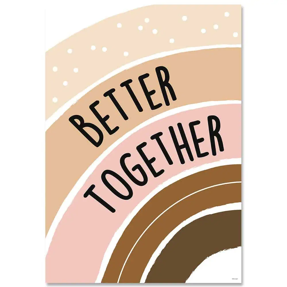 This poster features the popular phrase “Better together,” which promotes the idea of including everyone and working collaboratively to achieve a better result.