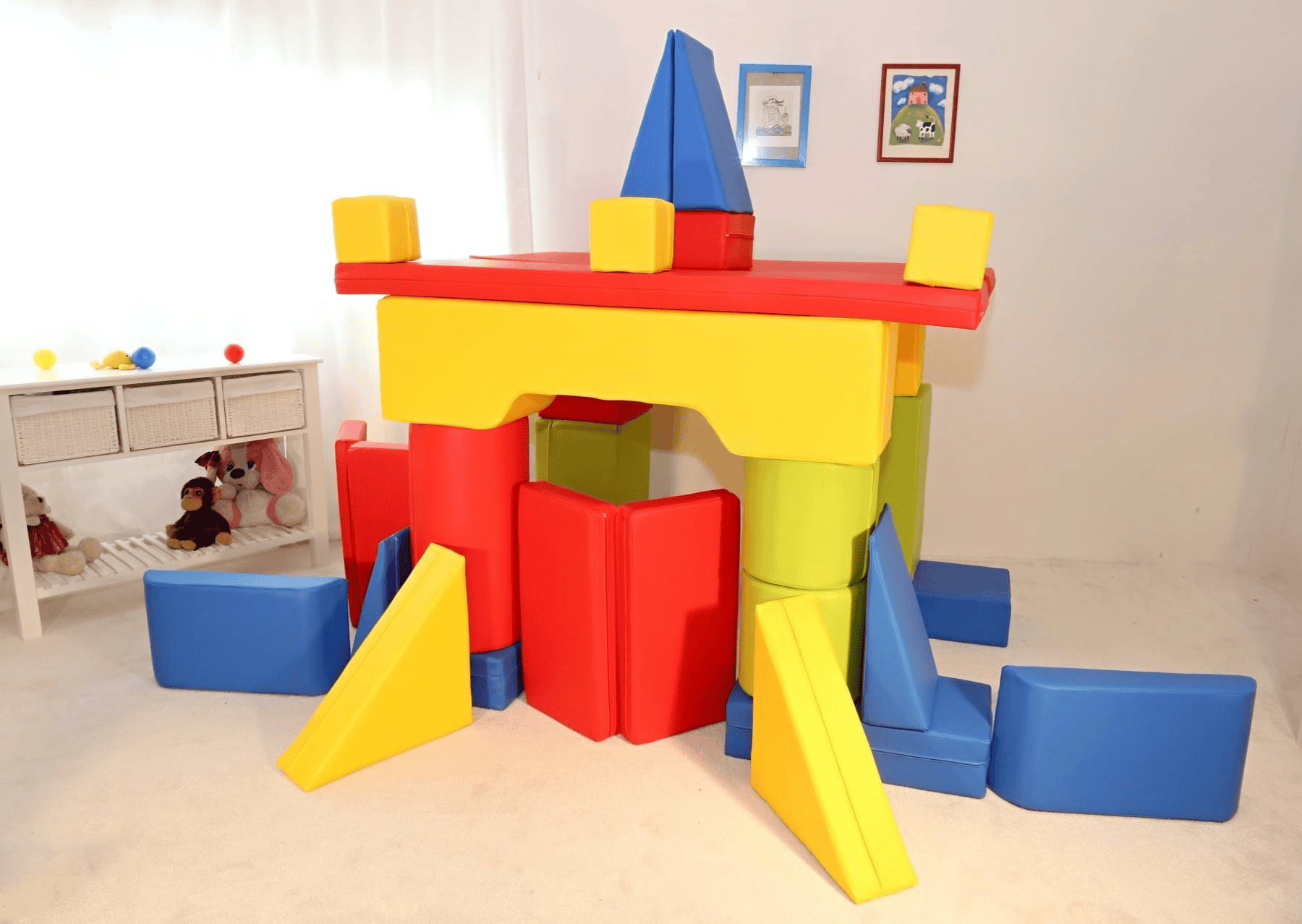 Compact size: ;150 x 90 x 60 cm 27 parts including mat. Creative giant kit created for the construction of a castle, ship or other shelter.