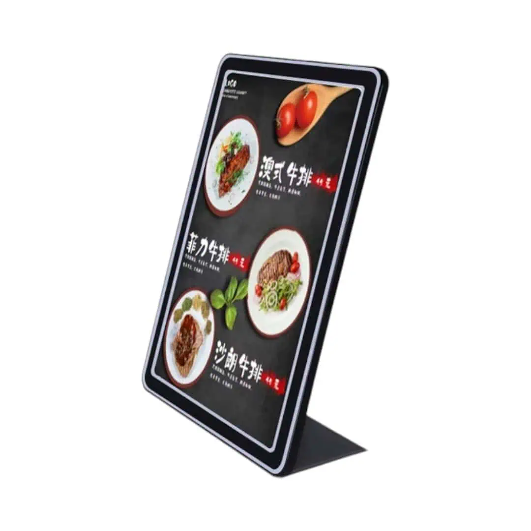 The Black L-shaped Slide Card Stand is a practical and stylish accessory designed to hold and display A4-sized documents vertically, with dimensions of 297mm by 210mm. Its sleek black finish adds a touch of modern elegance, making it suitable for both professional and personal settings. The L-shaped design provides stability and ensures that the displayed material is easily visible and accessible, whether on a desk, counter, or tabletop. This stand is ideal for showcasing menus, promotional materials, or informational signs in offices, retail environments, or at events. Its slide-in feature allows for quick and effortless updating of the displayed content, making it a versatile and functional tool for effective communication and presentation.